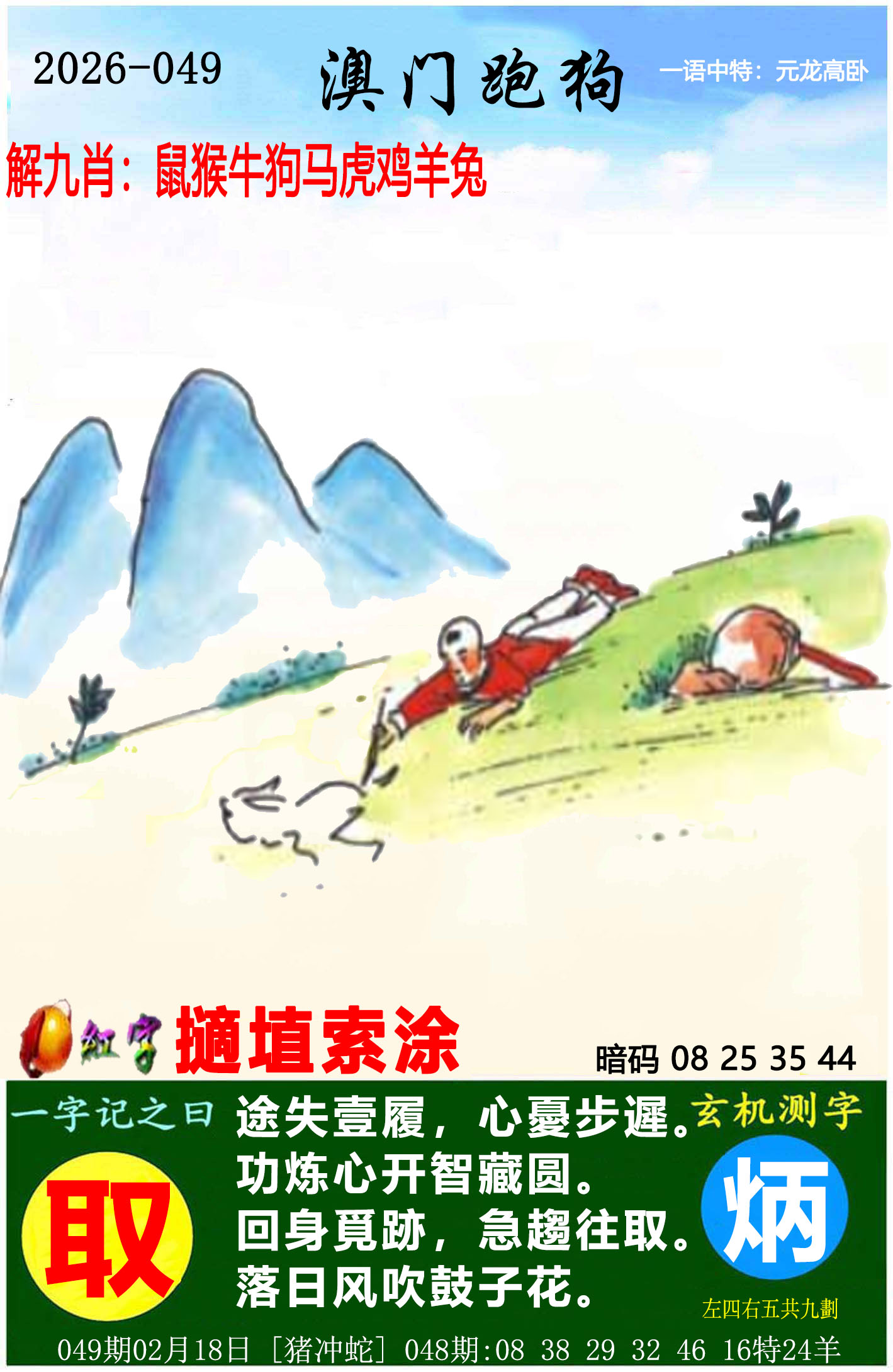 049期精准跑狗一字記之曰: