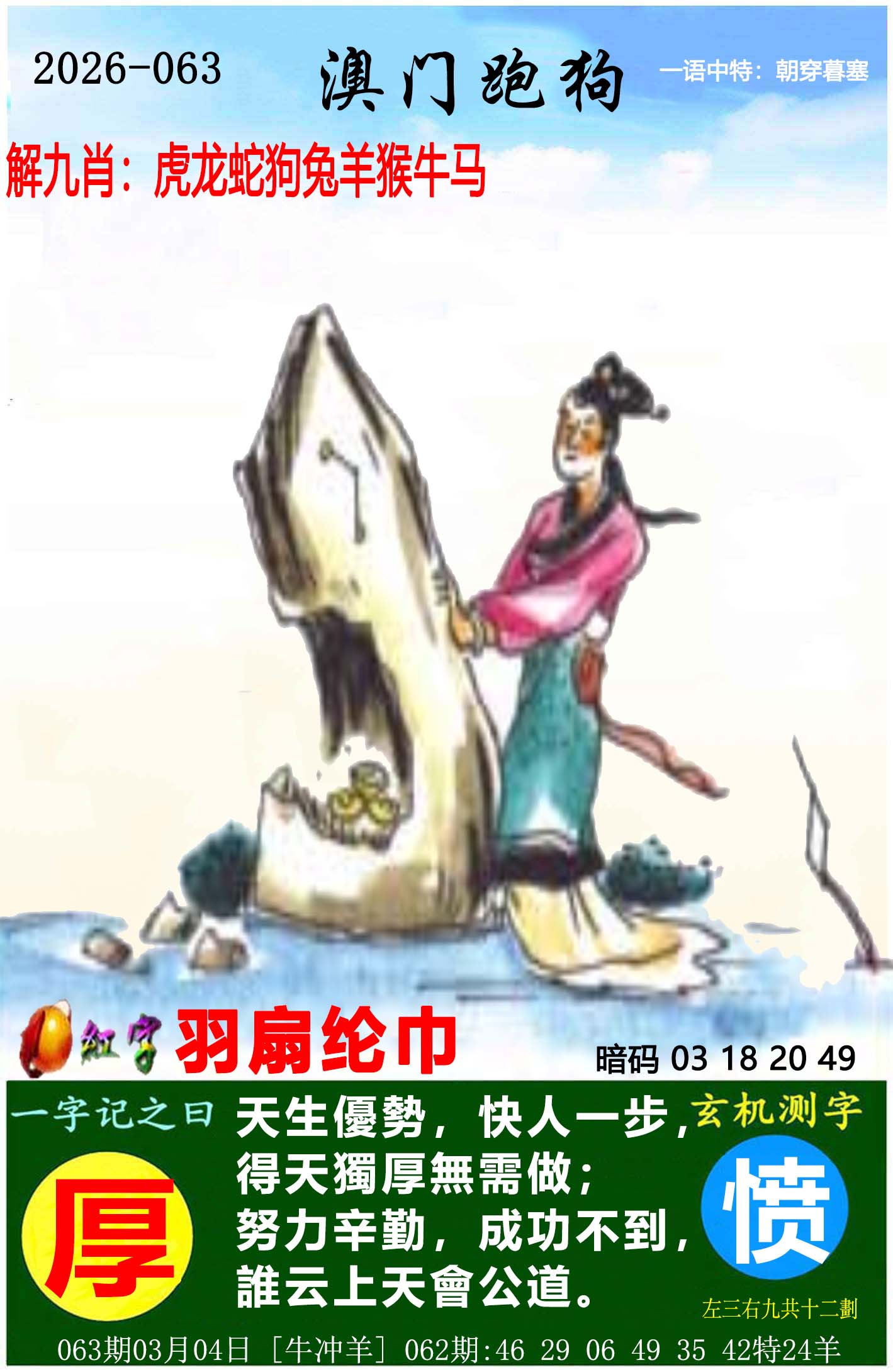 解析:这几句话形容的是空有计划却无力执行、心高却手低、难以成事的状态。诗意拆解:“力有不逮,無以為繼”:指能力不够,无法持续,对应力量虽大但笨拙的牛,或体力充沛却难持续的马。“徒具策略枉有計”:空有计谋却用不上,暗指聪明反被聪明误的鼠和猴。“謀定後動,眼高手低”:想得很好但做不到,对应好高骛远的龙,以及目光短浅的鸡。“也是拿手不成勢”:难成气候,暗喻难聚势的猪、胆小的兔、散漫的羊。生肖表达:这几句话点出了牛、龙、兔、羊、猴、鸡、鼠、狗、猪的困境。纵有谋略(鼠猴)却力不从心(牛马),眼高手低(龙鸡)难成气候。谨防空有计划,需脚踏实地才能扭转颓势