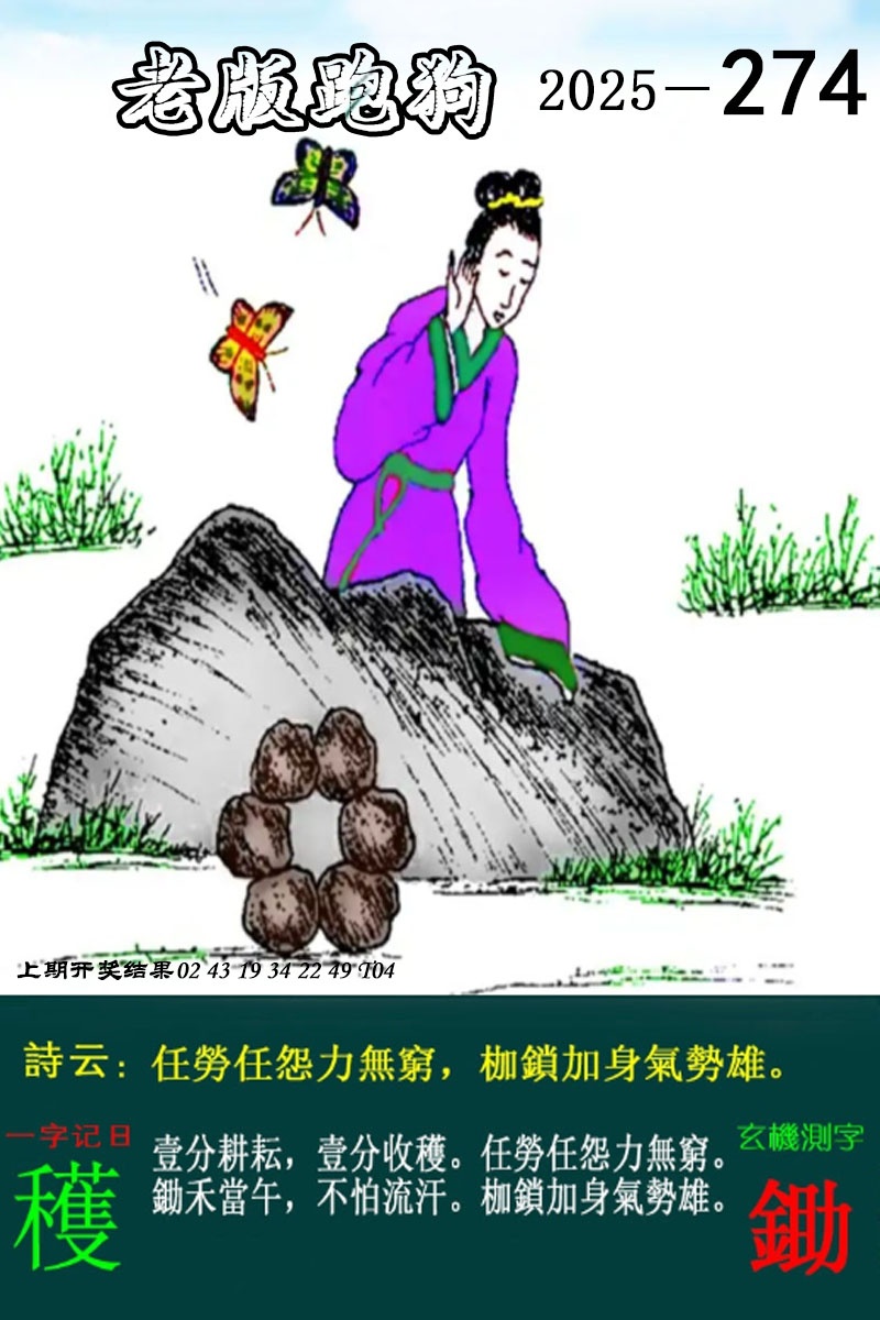 老版跑狗一字記之曰:【停】 詩云:嵗月匆匆最無情,力爭上游不要停。渾渾噩噩,虚耗生命,嵗月匆匆最無情。得過且過,一事無成,力爭上游不要停!玄機測字:《銀》